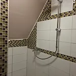 Ferienwohnung 'Fruehauf' Im Suedharz Ot Uftrungen is equipped with a bathroom that features a hair dryer and bath sheets. Additionally, you'll find a separate toilet and a shower.
